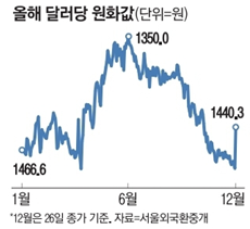 • 원화값 올해 평균 1420원대, IMF 넘어 역대 최저치 눈앞