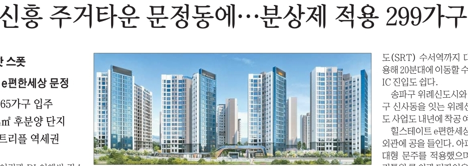 - 신흥 주거타운 문정동에 분상제 적용 299가구,