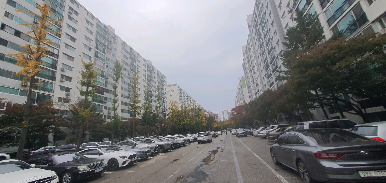 동간 간격은 비슷할텐데 아마도 주차 되어 있는 상태가 그런 느낌을 주는 것 같아요.