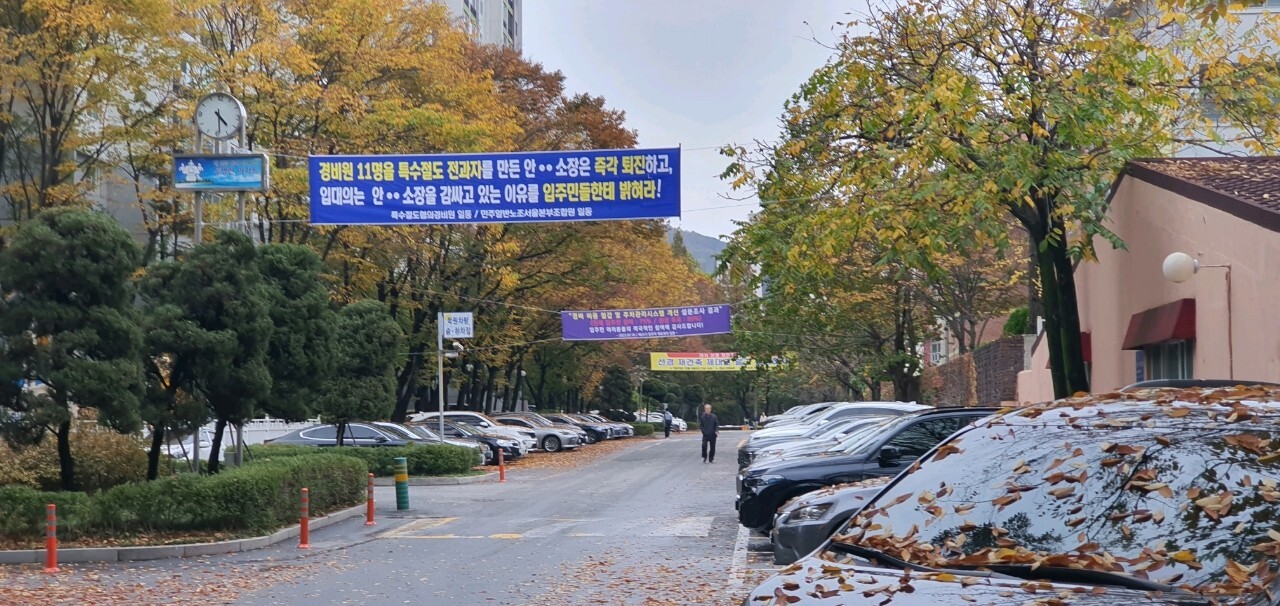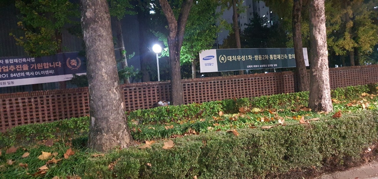 역시 여기는 들어오자마자, 재건축 관련 플래카드가, 쫘라락...