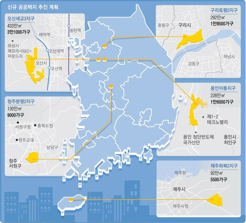 [강남발 집값 상승 자극할라, 아파트 규제는 그대로] - 사실상 서울, 구리 토평 1.8만가구, 오산 용인엔 반도체 신도시
