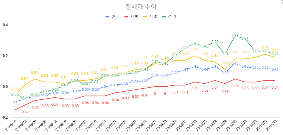 | [금요루틴] 11월 4주차 주간 아파트 매매전세동향 [한국부동산원 기준] (0) | 2023.11.24 |
