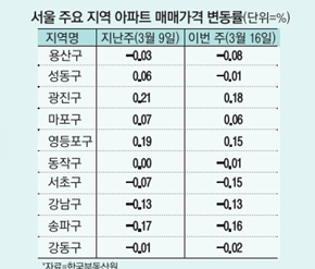 - 성동.동작 아파트값 하락 전환.. .강북 '15억 이하'는 뛰어