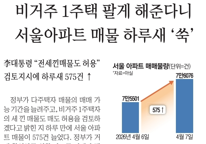- 비거주 1주택 팔게 해 준다니 서울 아파트 매물 하루새 '쑥'