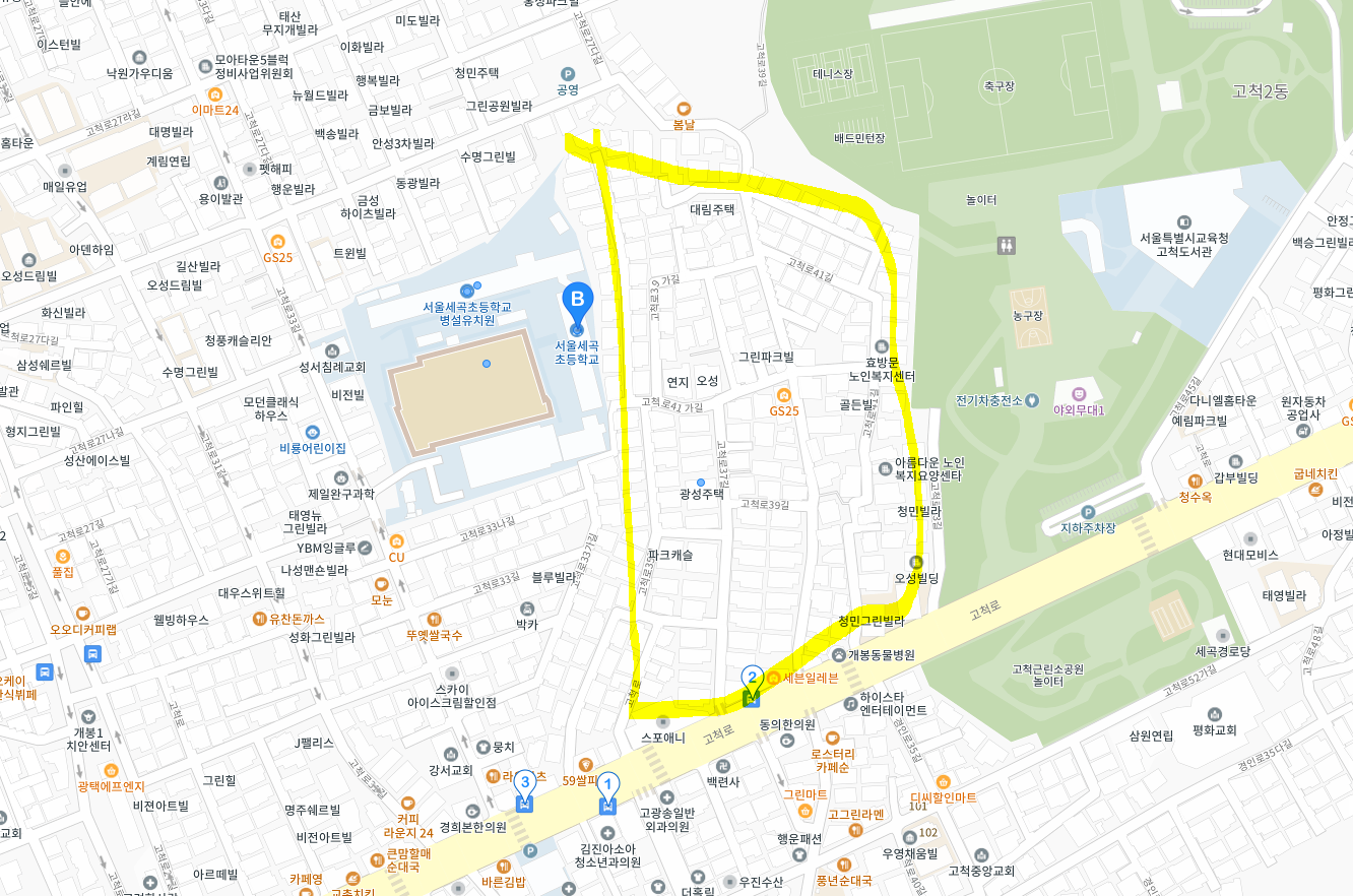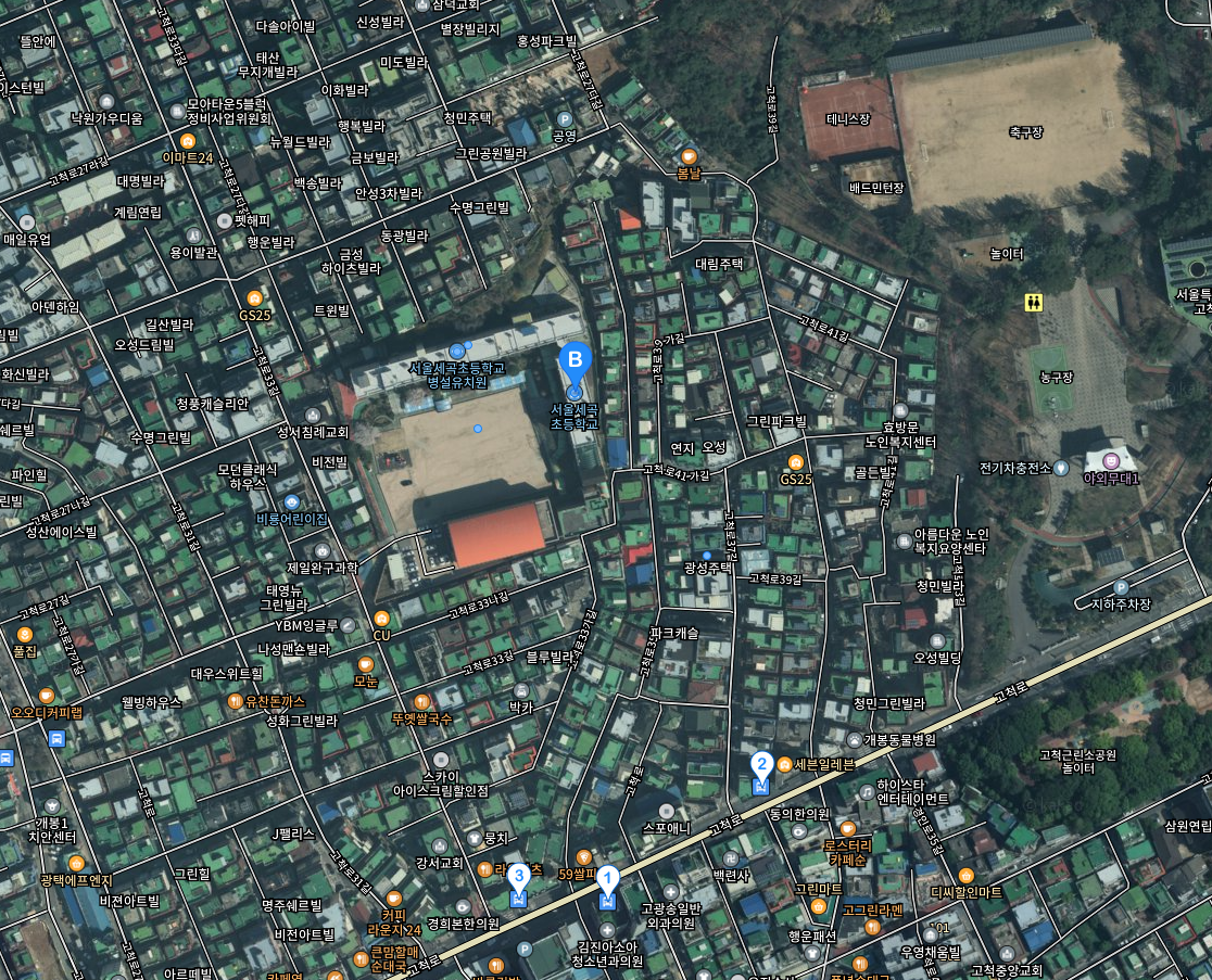 고척동 254 로는 카카오맵에서 잘 찾아지진 않아서 세곡초등학교로 검색을 해서 찾아 봅니다.