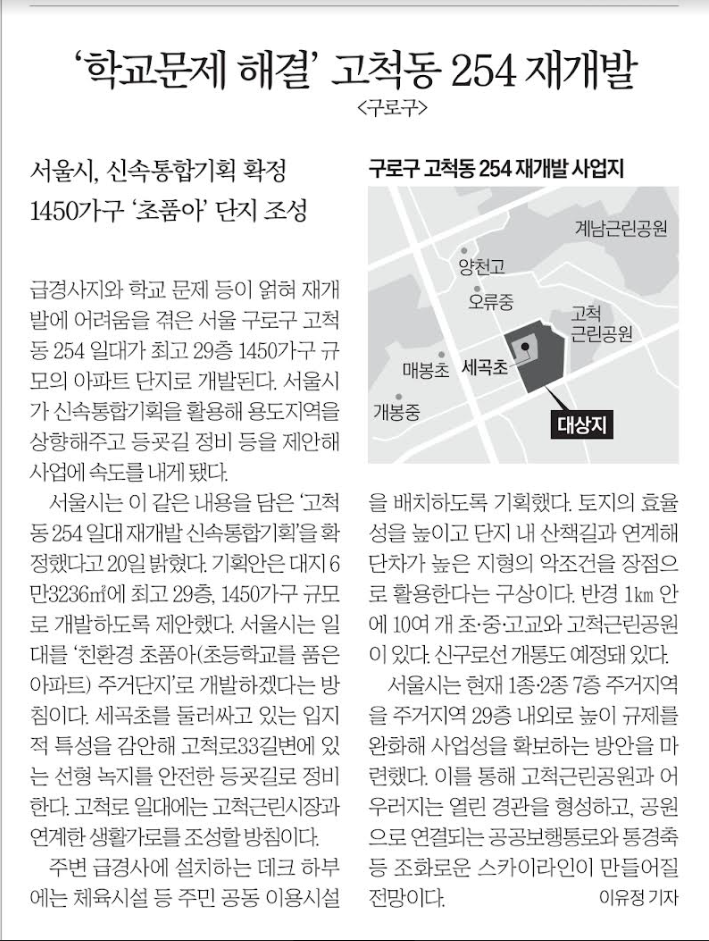 아침 기사에 고척동 254 재개발에 대한 기사가 있네요.
