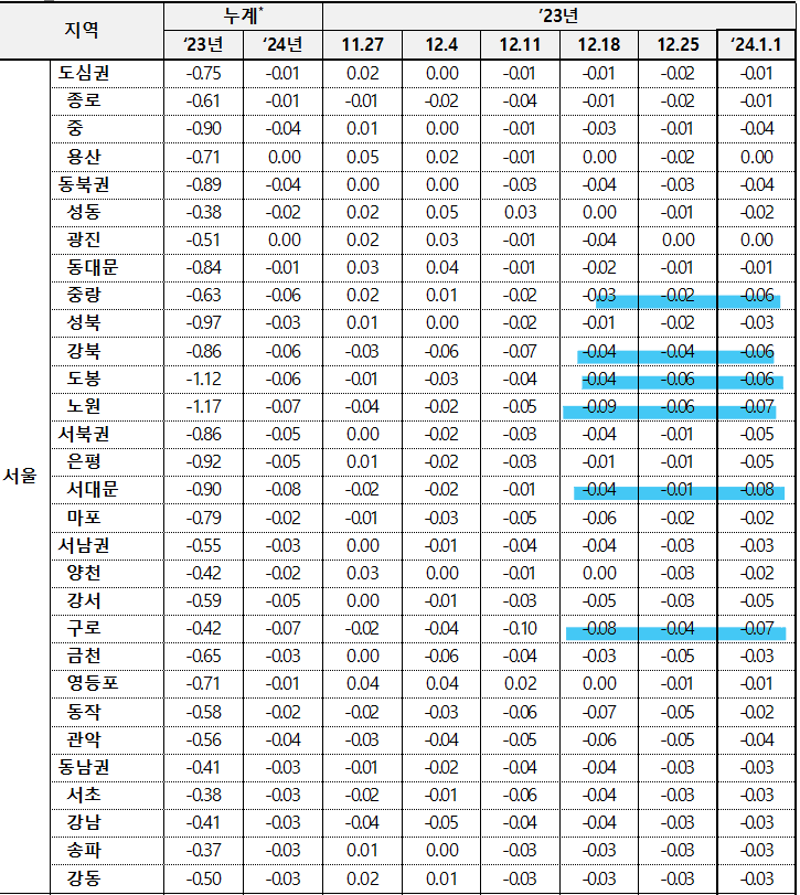 | [금요루틴] 1월 2주차 주간 아파트 매매전세동향 [한국부동산원 기준] (26) | 2024.01.12 |
