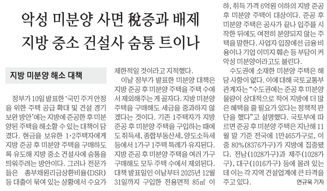 자 어쨌든. 악성미분양이 뭔지와 왜 지금이 문제인지는 여기까지 하고. 정책 내용을 보십시다.