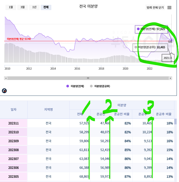 이게, 집이 다 지어졌는데도 안팔리네?? 그럼 준공후 미분양 (악성미분양)이 되는거죠.