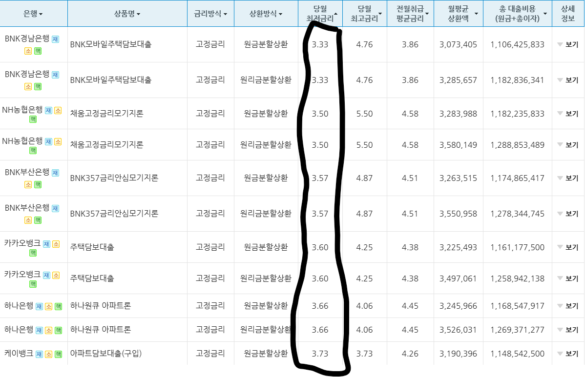 [최저금리가3%대 초반이라니.. 낮긴 낮다. ]