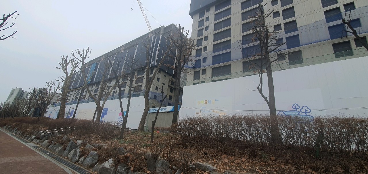 아파트 앞에 저렇게 딱 붙이면서 수평증축을 하네요.