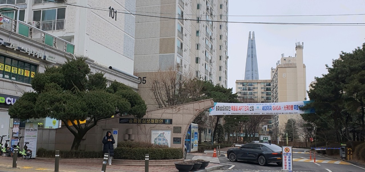 송파동 임장이 끝나갑니다. 쭈욱 돌아나와서 래미안송파파인탑을 전체적으로 찍어 봅니다.