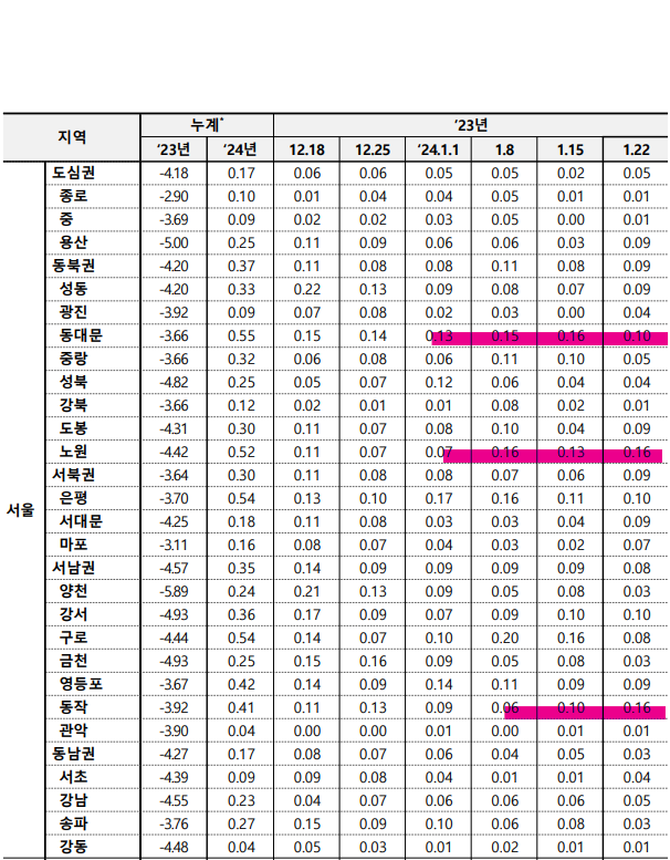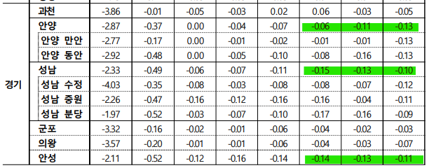 ㅇ [서울 : -0.04% → -0.03%]