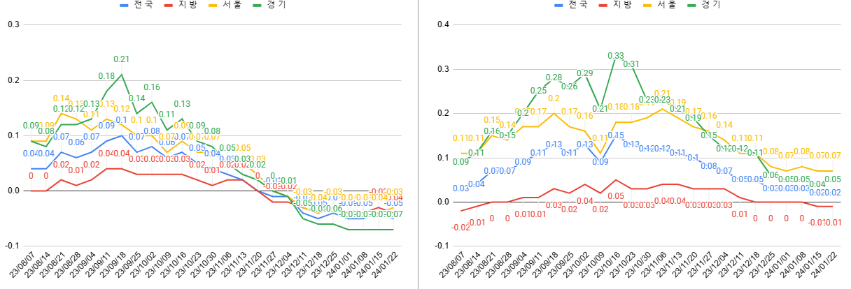 | [금요루틴] 1월 5주차 주간 아파트 매매전세동향 [한국부동산원 기준] (0) | 2024.02.02 |