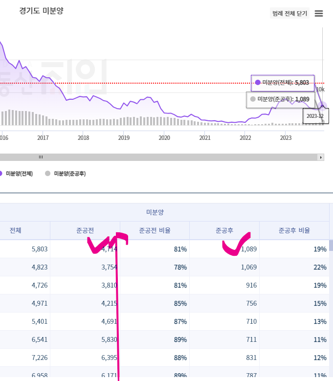 서울,경기 미분양, 준공전, 후 미분양이 모두 올라간다