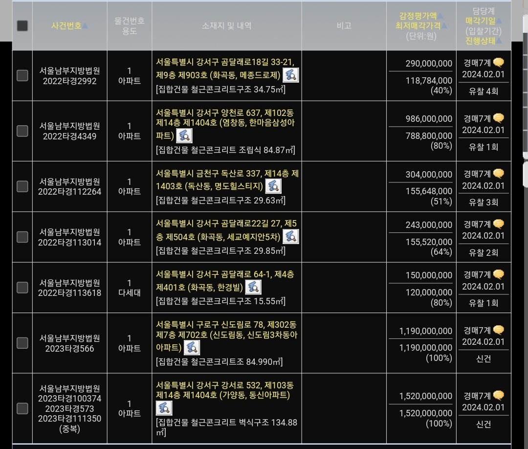 빌라, 오피스텔만 낙찰이되고 아파트는 한개도 불리지 않아서, 좀 아쉬웠습니다.