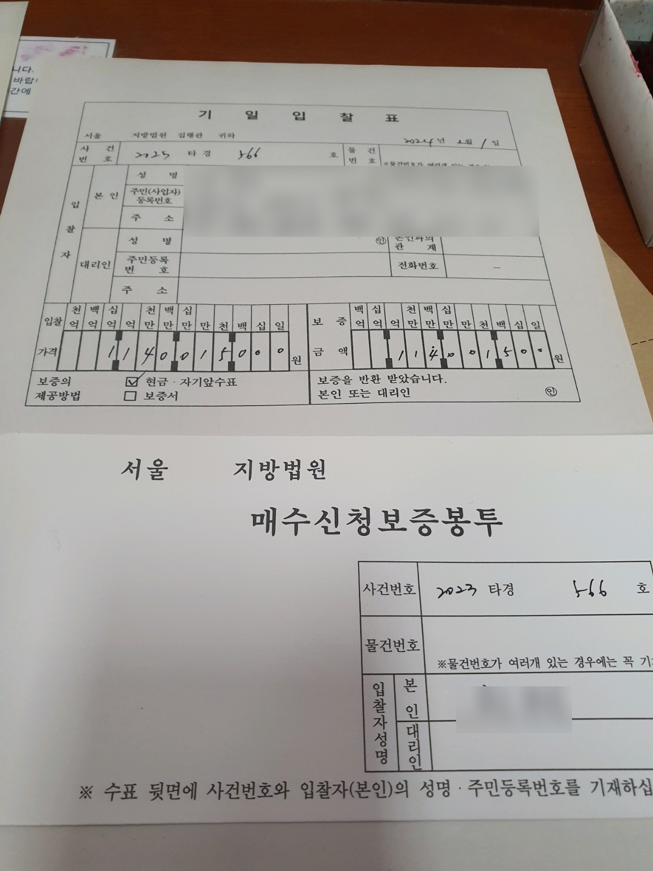다른 하나는, 금액을 썼는데, 십의 자리 이하는 쓰지 않아서 낙찰이 취소된 물건이었습니다.