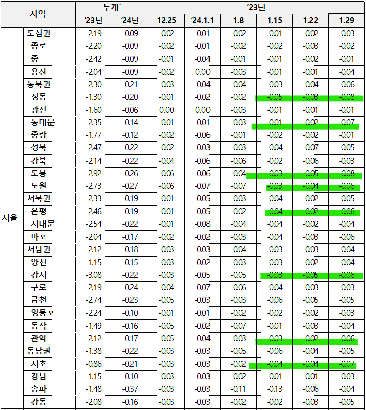 ㅇ [서울 : -0.03% → -0.05%]