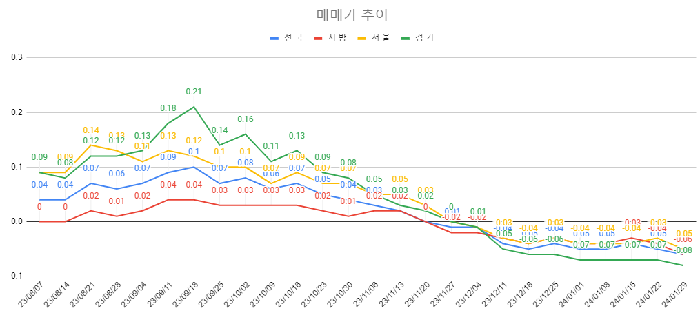 | [금요루틴] 2월 1주차 주간 아파트 매매전세동향 [한국부동산원 기준] (0) | 2024.02.09 |