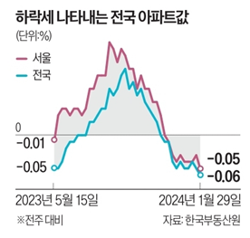 [항상 한주 늦으시는 ... 이분. 근데, 전주보다 전세가 상승폭이 줄어들었다는 것도 알려주셔야쥬..] - 전국 아파트값 10주째 하락