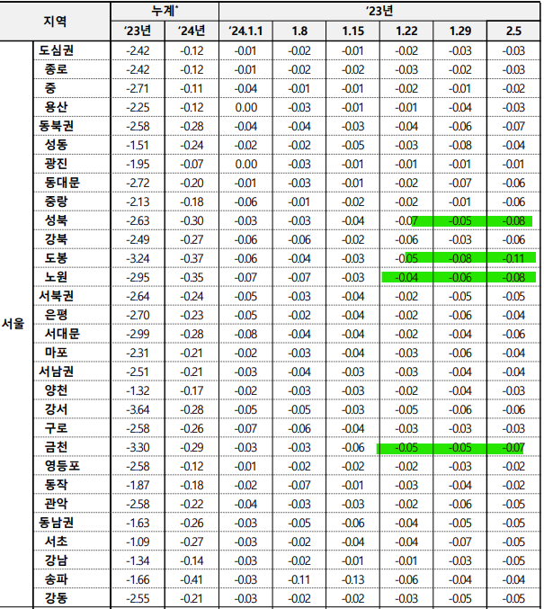 ㅇ [서울 : -0.05% → -0.05%]