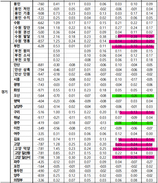 김포나 일산의 상승, 오산의 하락을 설명할 수 있는 부분이 아닌가 생각됩니다.