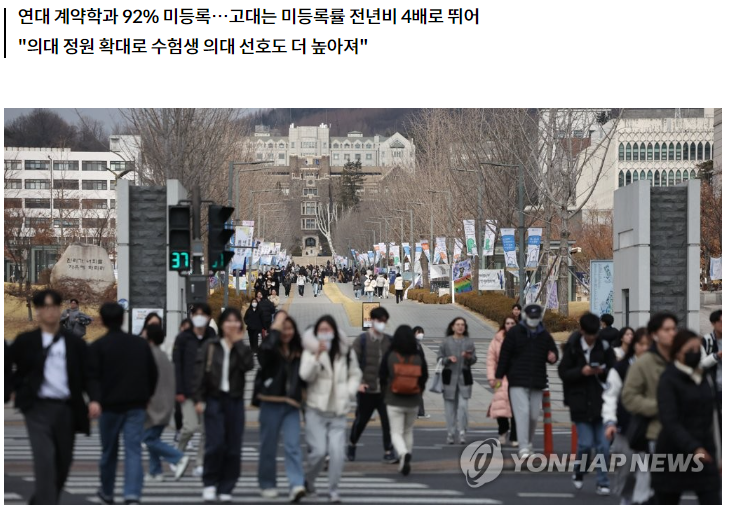- 대기업도 안간다... 의대 열풍에 연.고대 상위학과 대거 '미등록'