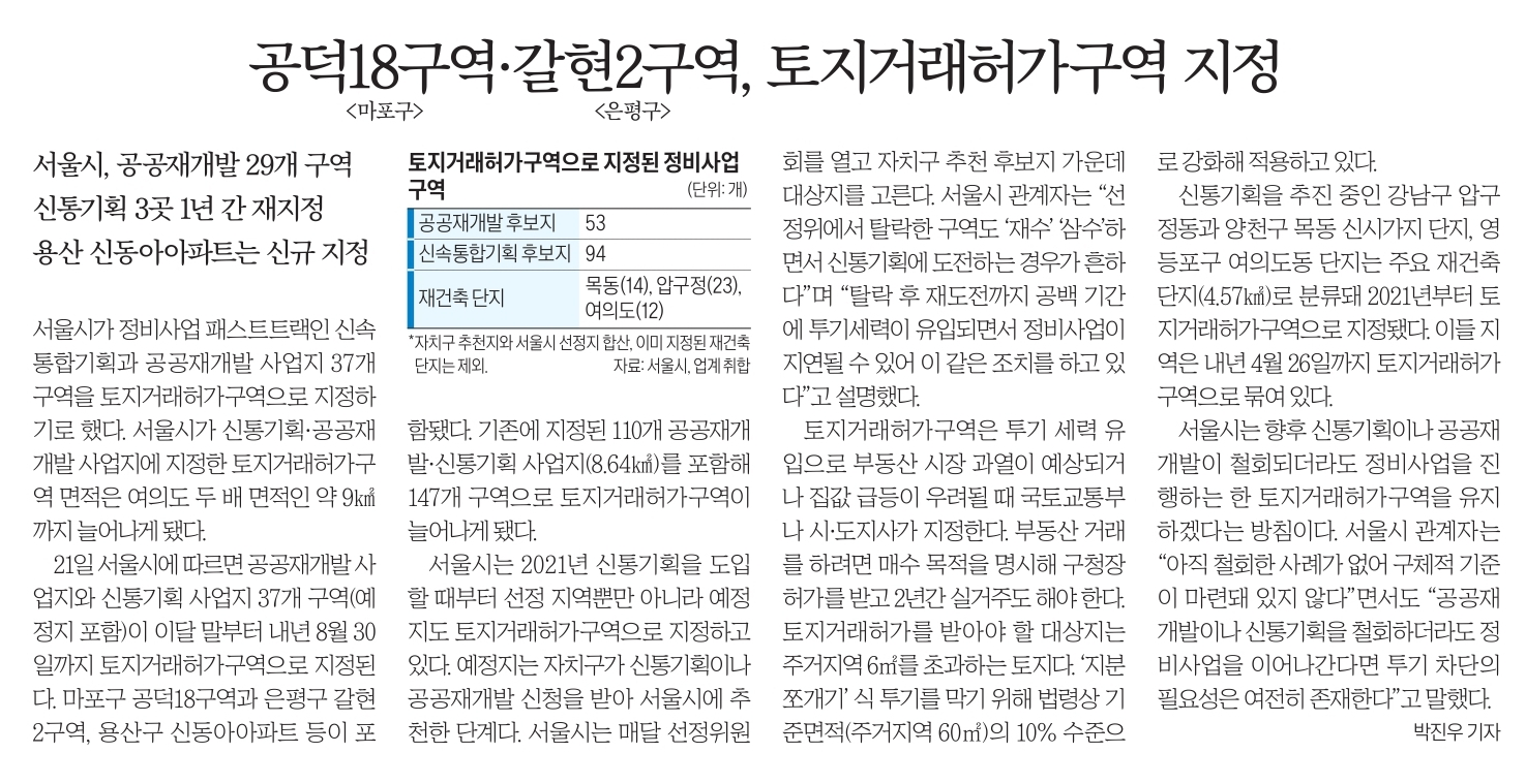 공덕 18구역과 갈현 2구역이 토허지역으로 지정되었다는 내용입니다.