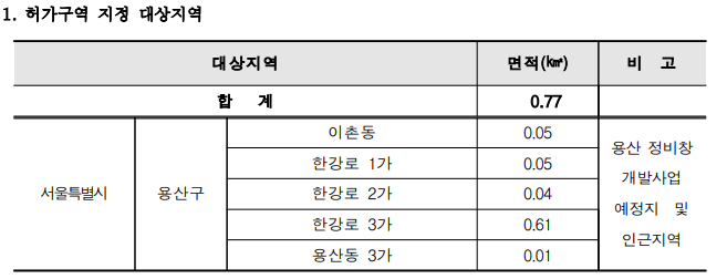 그리고, 용산구는 국토부 장관이 이런 내용으로 허가구역을 지정했죠.