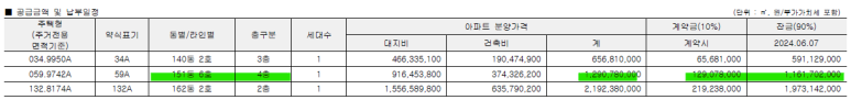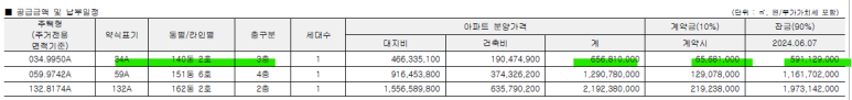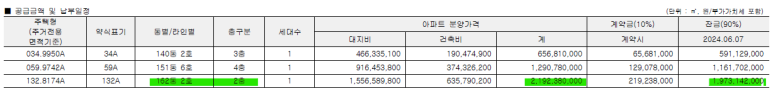 - 상기 공급금액에는 각 주택형별 공히 소유권이전등기비용, 취득세, 인지세 및 그 외 제세공과금이 미포함된 금액이며, 계약자 부담으로 납부하여야 합니다