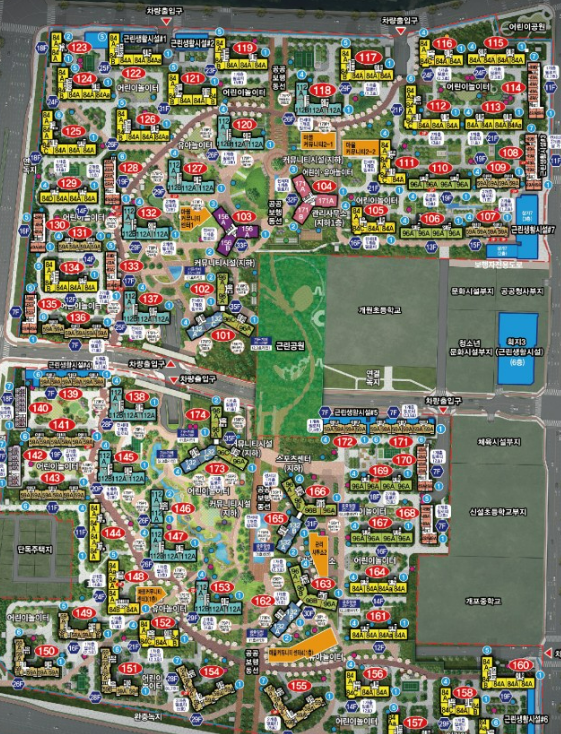 동향으로 작은 어린이 놀이터를 끼고 있다.