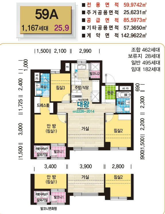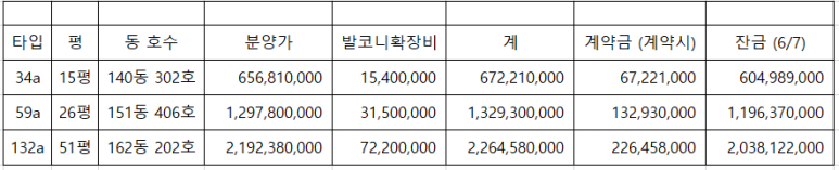 34나 132는 익숙하지 않지만, 59는 24평형의 전용이 대부분 59니까, 24평형이 아닐까 생각해 본다.