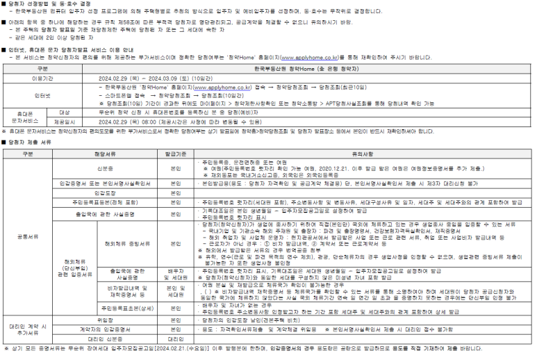 - 동 주택에 당첨되어 계약을 체결한 자 또는 예비입주자 중 추가입주자로 선정된 자