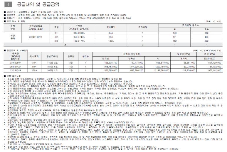 - 상기 공급금액에는 발코니 확장 비용이 미포함된 가격이며, 발코니확장 계약은 별도의 계약을 통해 진행되며, 추가선택 품목(가구, 가전 등 유상옵션)은 선택이 불가합니다