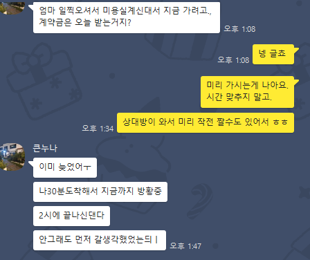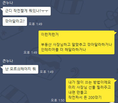 누나 : "어, 뭐 다른건 없었고, 인테리어 다시 이야기 하더라?"