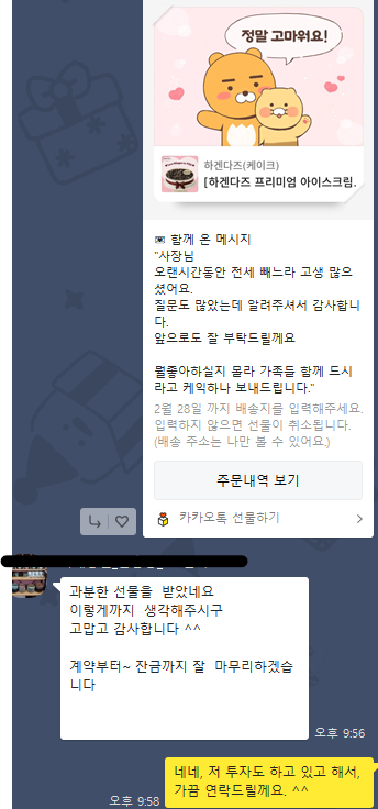 계약하기 바로 전날, 이렇게 선물을 드렸습니다. 큰건 아니고, 그렇게 일을 잘하시는 부사님은 아니시지만,