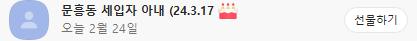 오!! 재수!!! 오늘 (2월 24일)이 아내분 (계약자분) 생일이네요!!!