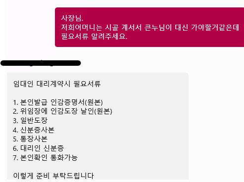 부동산 사장님께도 전화를 드리고 문자도 남겨놓습니다.