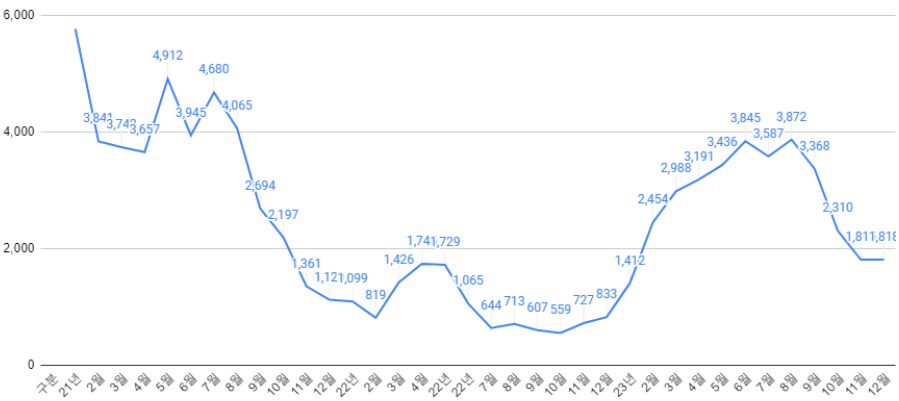 [현재 기준 2397건이면, 작년 10월 수준은 넘었네. ]