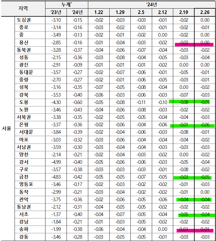 ㅇ [서울 : -0.03% → -0.02%]