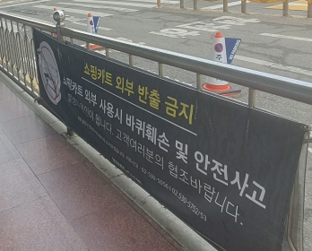 킴스에서도 카트 반출은 금지하고 있는데...