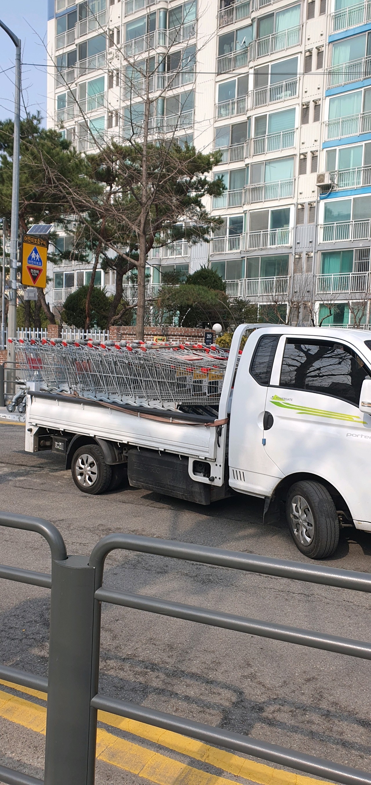 가다가, 킴스클럽 카트 수거 전기차를 만났습니다.