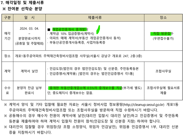 매각 가격은 조합사무실에 내는건데, 부동산 중개를 통해서 내는거??? 선착순 분양이네요?