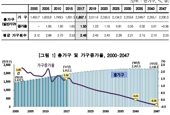기사에서 보니, 2040년까지는 가구수가 늘어난다고 하고 있네요.
