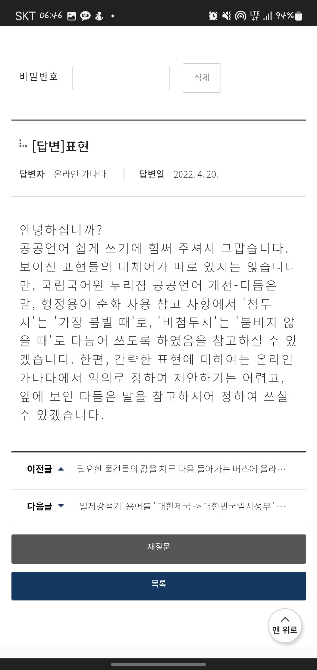 (아니, 국립국어원에서도 이렇게 이야기 하고 있는데, 관공서에서 "가장 붐빌때" 혹은 "출퇴근 시간"이라고 써 주면 안됩니까??ㅎㅎ"