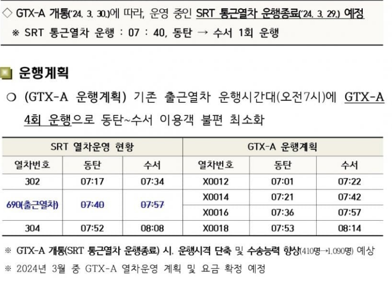 우선 SRT 출근열차가 없어지는 만큼 생기는 거구요.