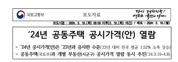 어제 날짜로, 공동주택 공시 가격(안) 열람 공지가 나왔습니다.