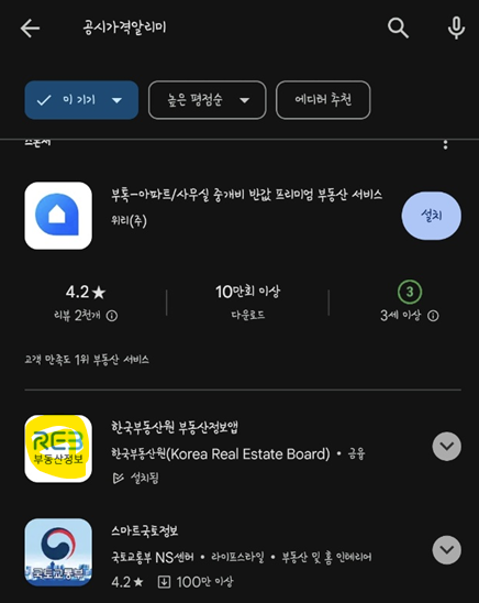 우리는 공신력 있는 기관을 좋아하니, "한국부동산원"에서 나온 앱을 다운 받으십시다.