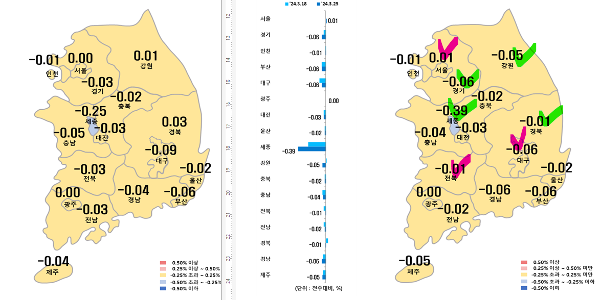 3월 4주차 시도별 아파트 지난주 대비 매매가격지수 변동율