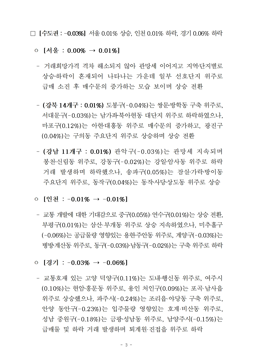 ㅇ [서울 : 0.07% → 0.07%]
